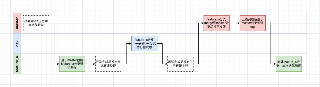 - dev:开发分支,用于测试环境发版(默认跟随项目创建)
